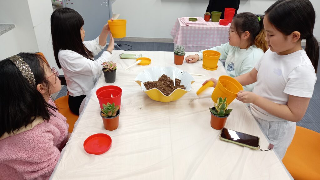 오늘은 다같이 다육이를 만들어보았어요~ 다육이는 건조한 환경에서 잘 자라는 실내 반려식물입니다! 다들 이쁘게 잘 키우길~