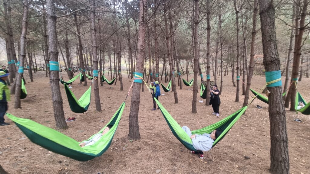 이리 저리 뛰어다니고~ 나무 사이에서 뛰어 놀고 해먹에서 쉬면서 자연과 하나가 되었어요!